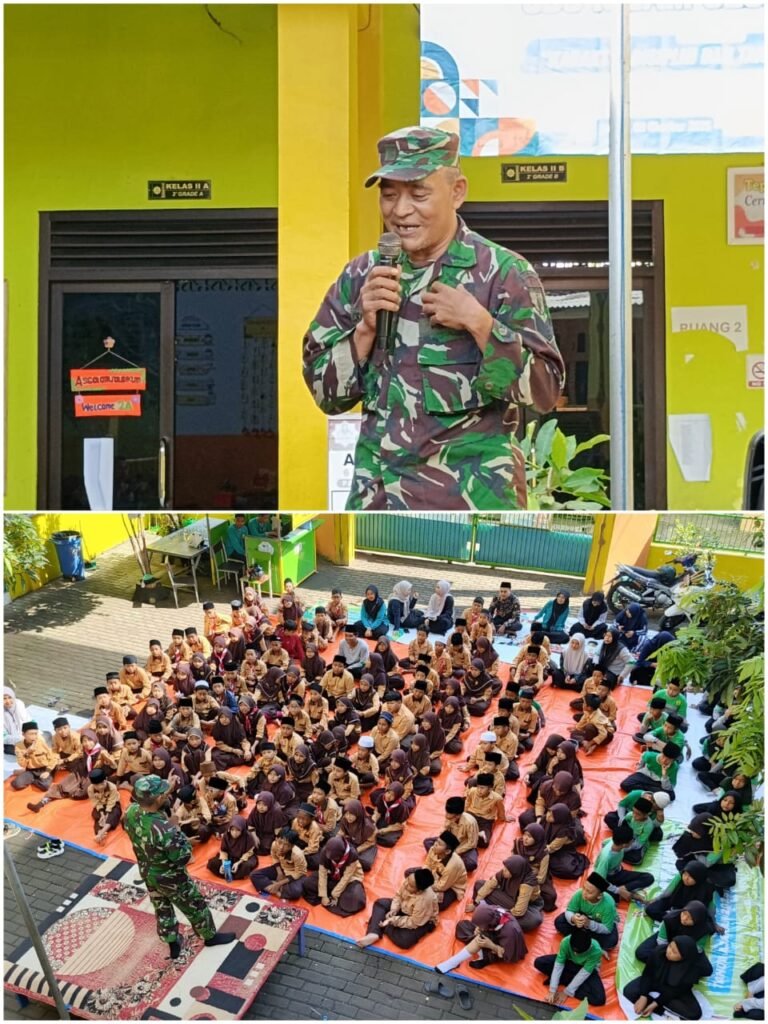 Selanjutnya untuk kegiatan kelas 4-6 dilaksanakan di halaman sekolah dengan tema “Karakter Disiplin dan Tanggung Jawab”. Materi pertama para siswa dikenalkan dengan pengenalan profesi tentara dan profil siswa yang cinta tanah air. Untuk materi kedua para siswa dikenalkan dengan materi wawasan kebangsaan yang terdiri dari keberagaman suku dan bahasa di Indonesia serta saling toleransi pada perbedaan itu berdasarkan filossofi Bhineka Tunggal Ika. Setelah penyampaian materi dilaksanakan, diadakan kuis oleh tentara.