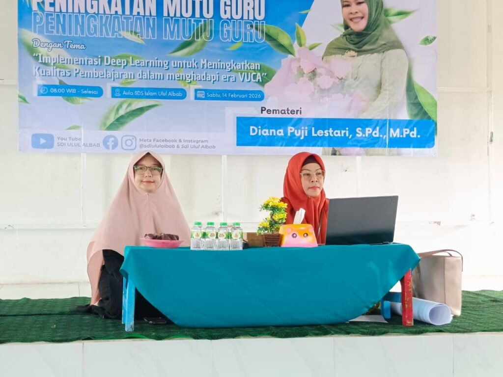 Ulul Albab- Dalam rangka meningkatkan kualitas pembelajaran yang adaptif terhadap tantangan zaman, sekolah menyelenggarakan pelatihan guru bertajuk “Implementasi Deep Learning untuk Meningkatkan Kualitas Pembelajaran dalam Menghadapi Era VUCA” pada Sabtu, 14 Februari 2026. Kegiatan ini menghadirkan narasumber inspiratif, Ibu Diana Puji Lestari, S.Pd., M.Pd., yang membimbing para guru memahami sekaligus mempraktikkan pendekatan Deep Learning dalam perencanaan pembelajaran.